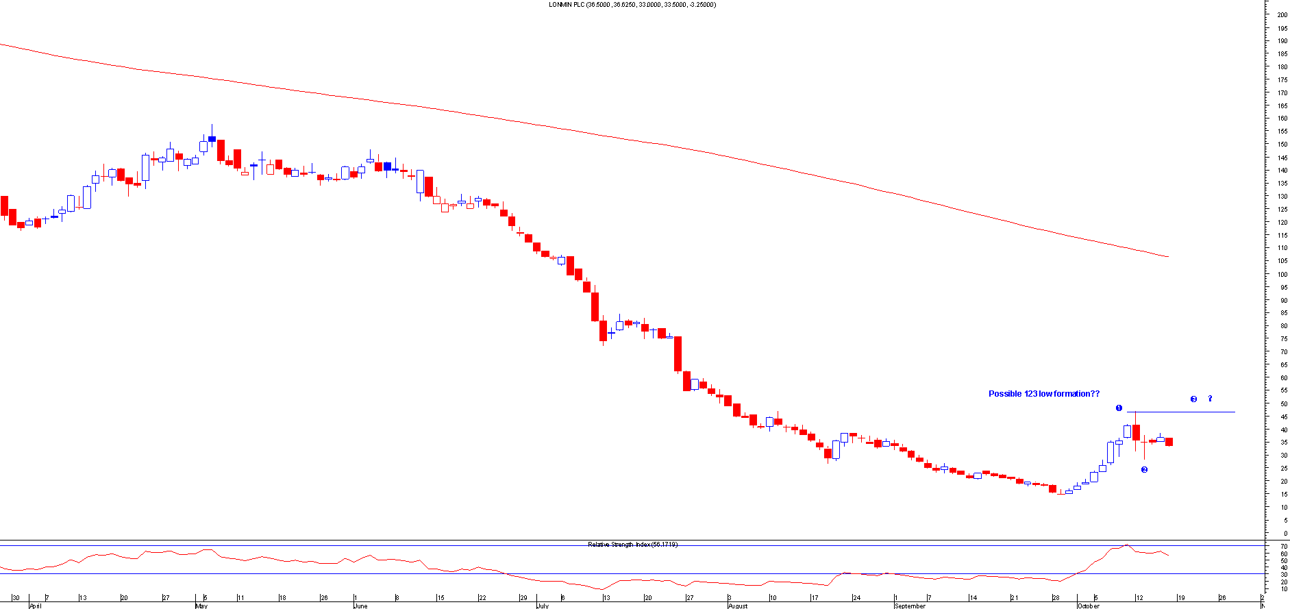 De la Rue: 123 low breakout,but trade went back down so currently down 17 points but still in trade.