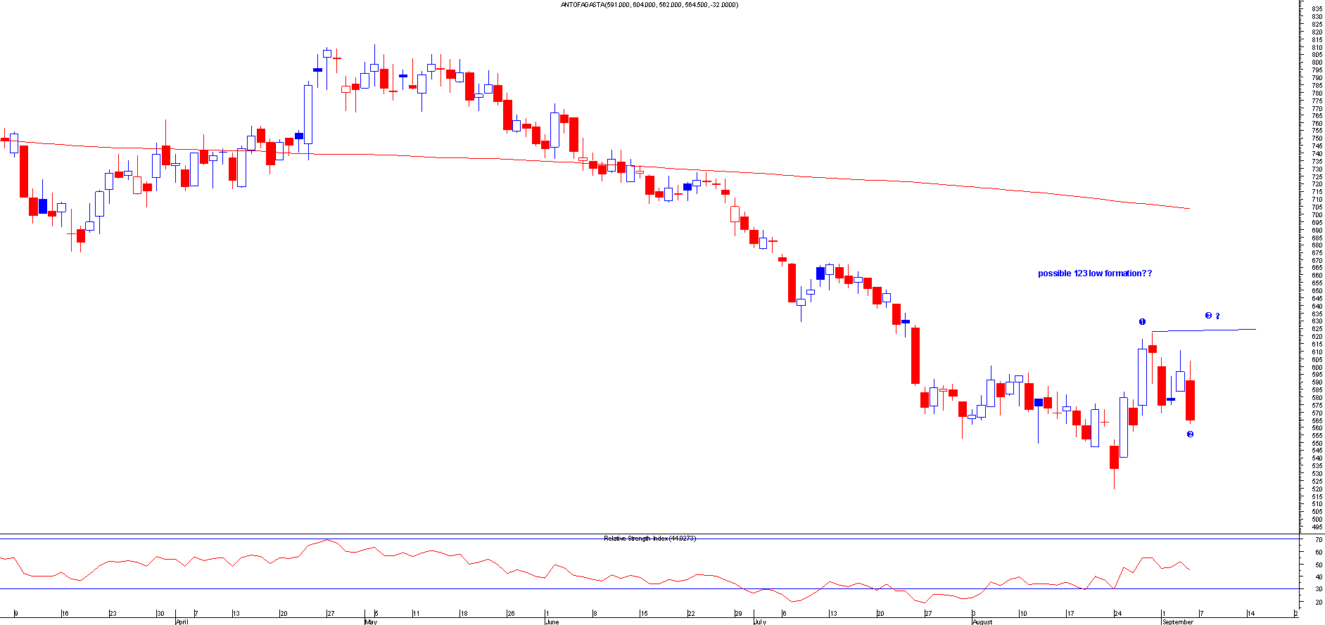 The markets have been crazy last few week and i still expect the markets to go lower soon,but there are loads of 123 low formations out there so possible bottoms are out there. This weeks share tips have more than the usual amounts on there and ive also put up commodity in there. These tips are for the short term only..Its always good to get the feel for the markets before placing any of these trade. Please remember that these are all short term trading tips so some times you have to exit quickly.