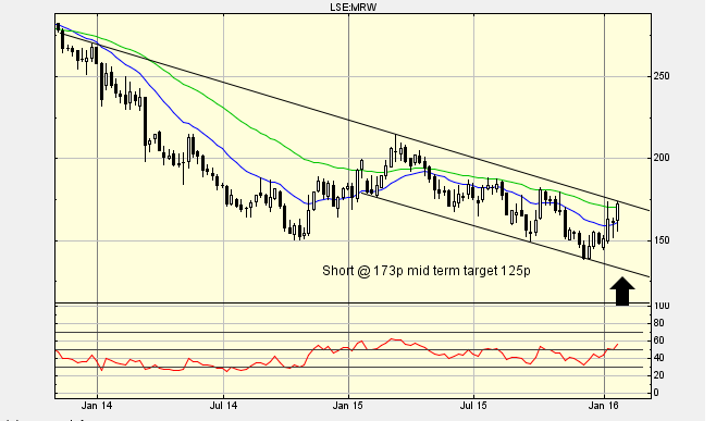 Short @ 173p mid term target 125p, stop 181p.