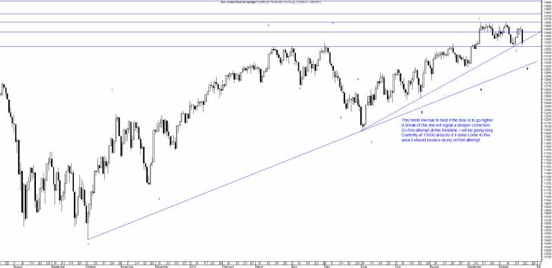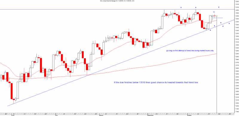 If the dow finishes the day below 13510 then i think it will head towards that trend line at 13368 at which point i will go long on the first attempt only with 40 point stop